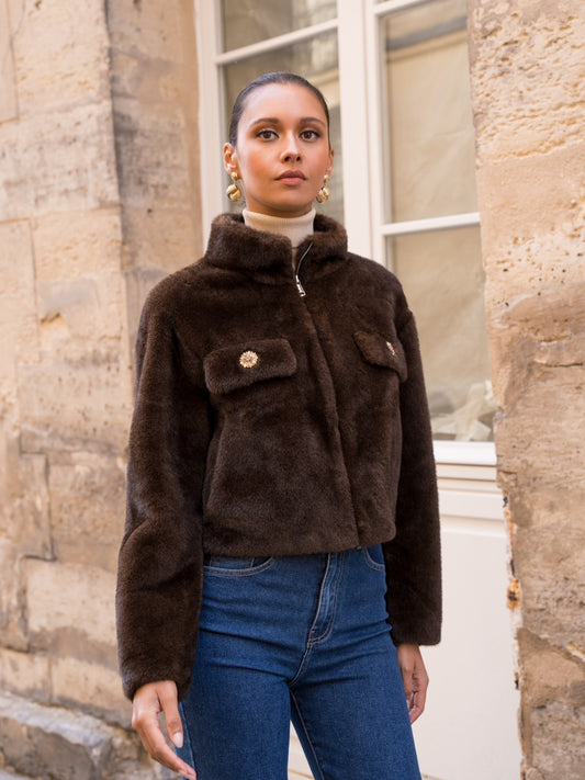 Faux Fur Jacket With Statement Buttons