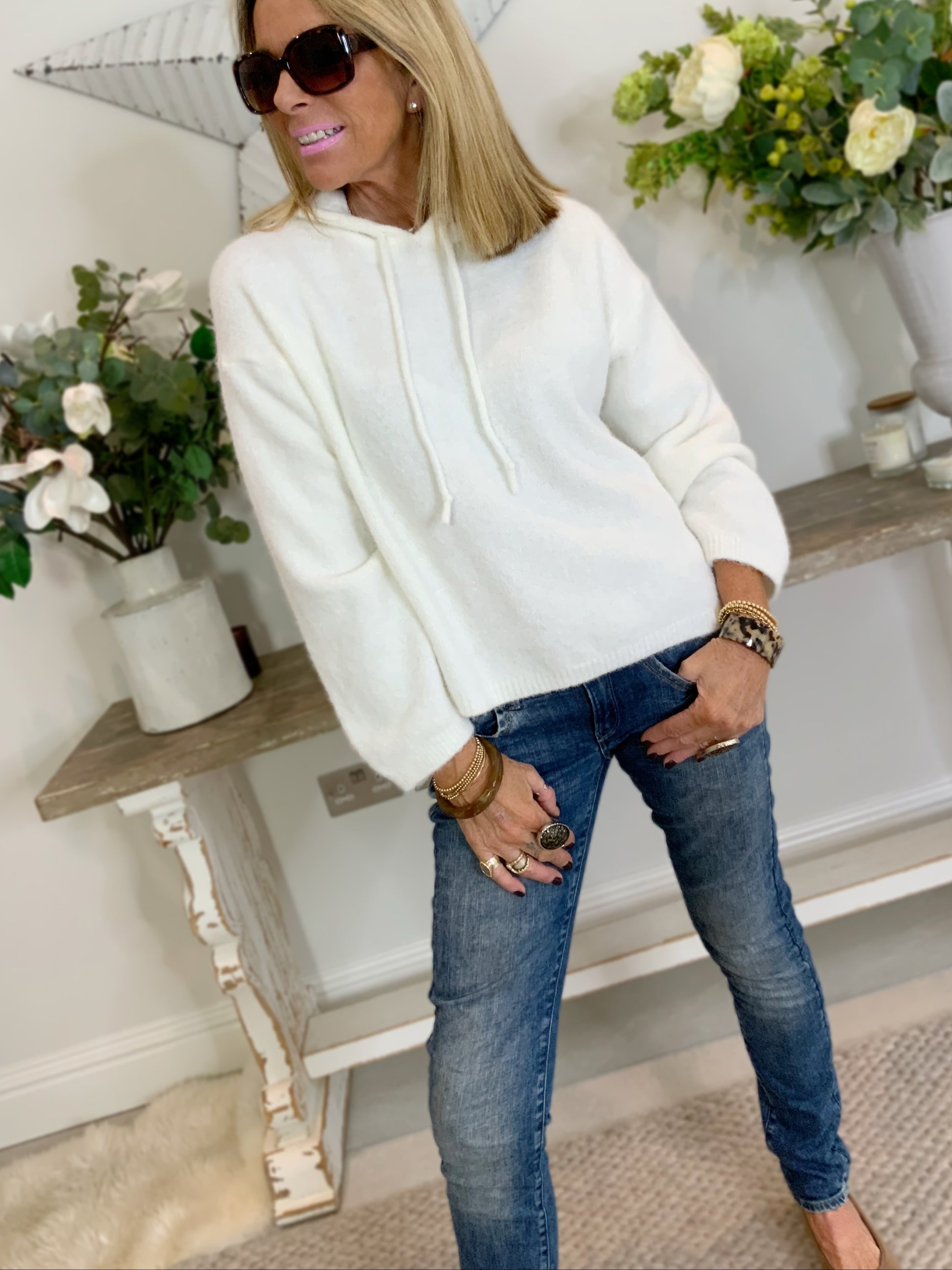 A super soft alpaca wool blend knitted hoodie in a neutral tone, that’s ideal for layering, keeping you cosy and stylish